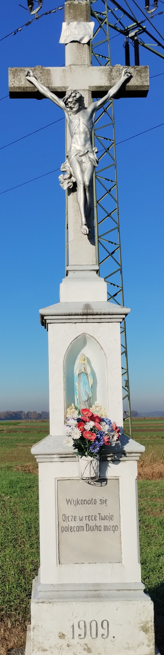 Dla upamiętnienia tamtego tragicznego wydarzenia i przebłagania Boga, w 1909 roku, właścicielka pola Mariana Seltmann, wystawiła ufundowany przez siebie krzyż. Na nim kazała wyryć słowa: „Wykonało się. Ojcze w ręce Twoje polecam ducha mego”, z tyłu krzyża widnieje napis: „Fundowany Mariana Seltman”.
